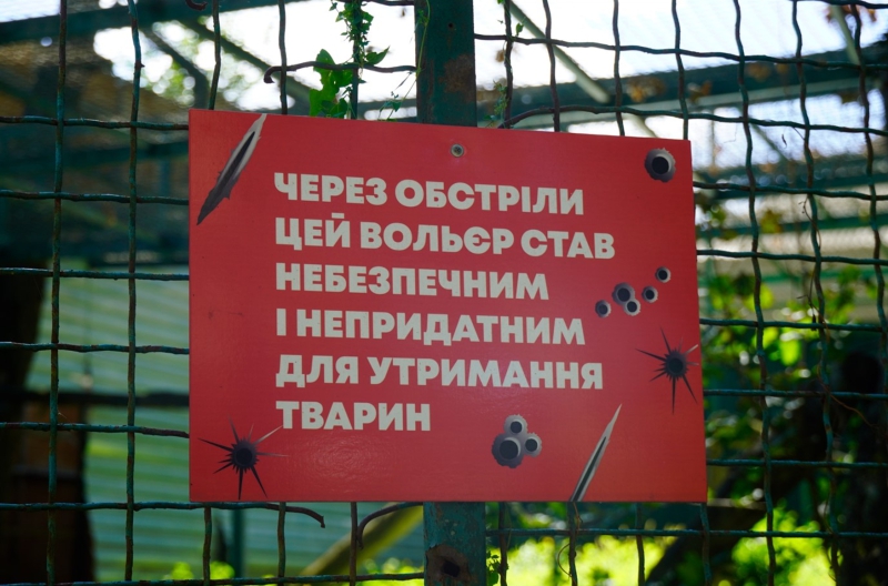 The park lay in ruins until the fall of 2022, when the Russian occupiers were driven out of the Kharkiv Region. In November, the first animals were brought back, and in the summer of 2023, part of the park was reopened to visitors. Finally, in the fall of that year, Feldman Ecopark was officially declared operational again. Today, it is also a real-life museum of the Russian-Ukrainian war. A faded billboard at the entrance — still in Russian — offers tours to visitors.