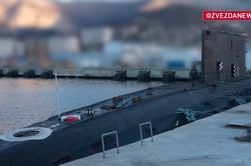 Partially blurred footage of the submarine shared by Zvezda following the drone attack in Novorossiysk. Screenshot: Zvezda (@zvezdanews / Telegram)