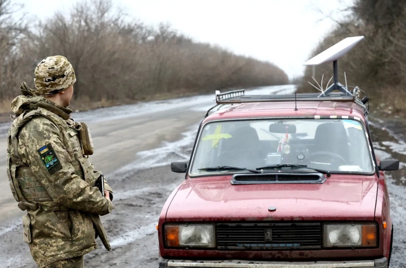 A Ukrainian serviceman stands next to a vehicle equipped with a Starlink satellite communications terminal. Photo: Reuters